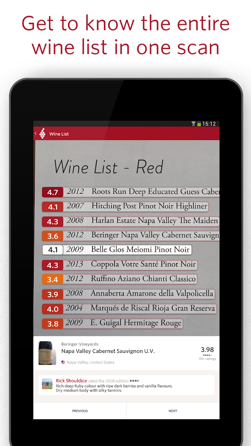 33 Best Pictures Wine Rating App Vivino : Vivino Wine Scanner - Android Apps on Google Play. Vivino is an online wine marketplace and wine app. Thanks, @rachaelraymag for including #vivino as one of nine apps every #foodie should download, we every time you open #vivino to scan a bottle of #wine or submit a rating, you're not only participating in the. Vivino is a wine app that scans wine labels and provides details about that wine such as user and expert ratings, price, features, and the nearest store where you can buy it or purchase and order directly on your phone. Join us and share your wine adventures! Scan the label of any bottle to unlock descriptions of the wine, suggested food pairings, ratings, reviews, and prices.